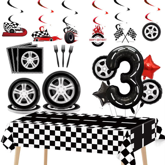 Car Wheel Theme Birthday Party Plate Napkin Balloons Checkered Race Car Themed Party 3TH 4TH 5TH Birthday Party Supplies